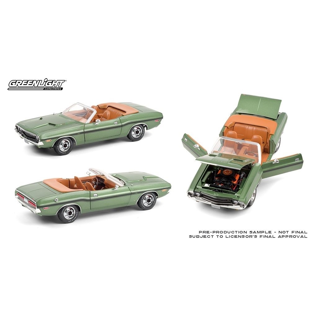 Greenlight Collectibles - 1/18 Convertible 1970 Dodge Challenger R/T Green w/Tan Interior - GL13586