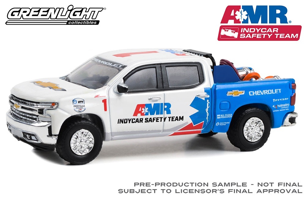 Greenlight Collectibles - 1/64 (6pcs) 2022 NTT AMR Indycar Safety Team #1 w/Safety Equipment in Truck Bed 2022 Chev Silverado - GL30403