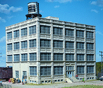 At the Walthers Cornerstone Hardwood Furniture Company boxcar doors slide open. Ramps clang into place from the loading dock. Strong backs bend to their task as the first crates are carried out of the warehouse and into the car. Tucked into the cramped quarters of the industrial district, the Hardwood Furniture Company is the kind of industry that every layout needs. It's big enough to look right, small enough to fit and packed with realism. Check out the authentic architectural trim molded on each wall or the over 50 separate windows! There's a covered loading dock for boxcars and roll-up doors for trucks. Up on the roof, a water tank, elevator house and chimney are included to detail this important area. Complete instructions and colorful signs round out the kit. Plus, modelers who desire to make the Hardwood Furniture Company a larger building will find it's easy to expand with some minor kitbashing.
