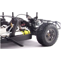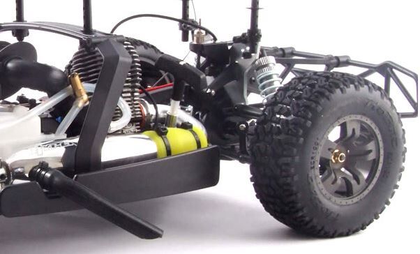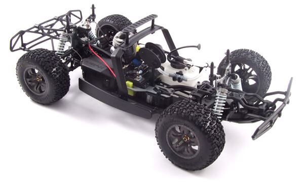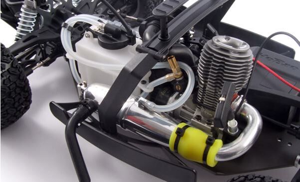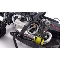 This 1/10th scale 4 wheel drive truck has been designed for the serious competitive racer. This kit comes 100% pre-assembled and includes a quality .18 size engine, servos, tuned pipe, HoBao tyres, and painted bodyshell.