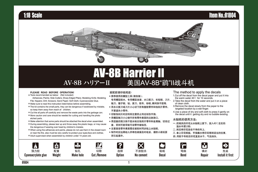 HobbyBoss 1/18 AV-8B Harrier II Plastic Model Kit [81804]