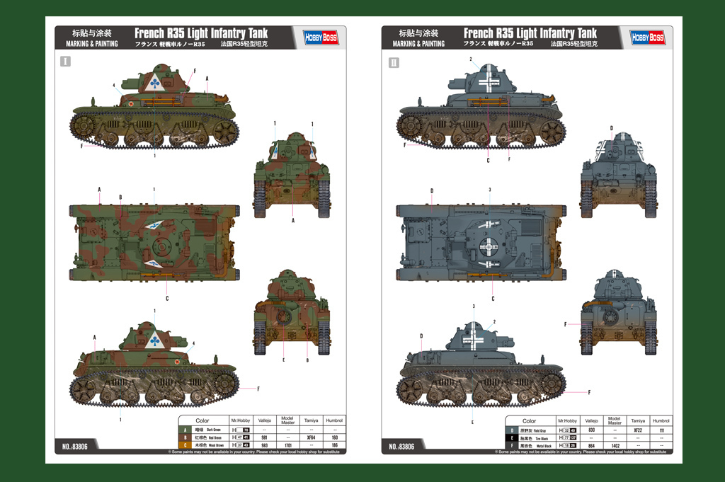 HobbyBoss 1/35 French R35 Light Infantry Tank Plastic Model Kit [83806]
