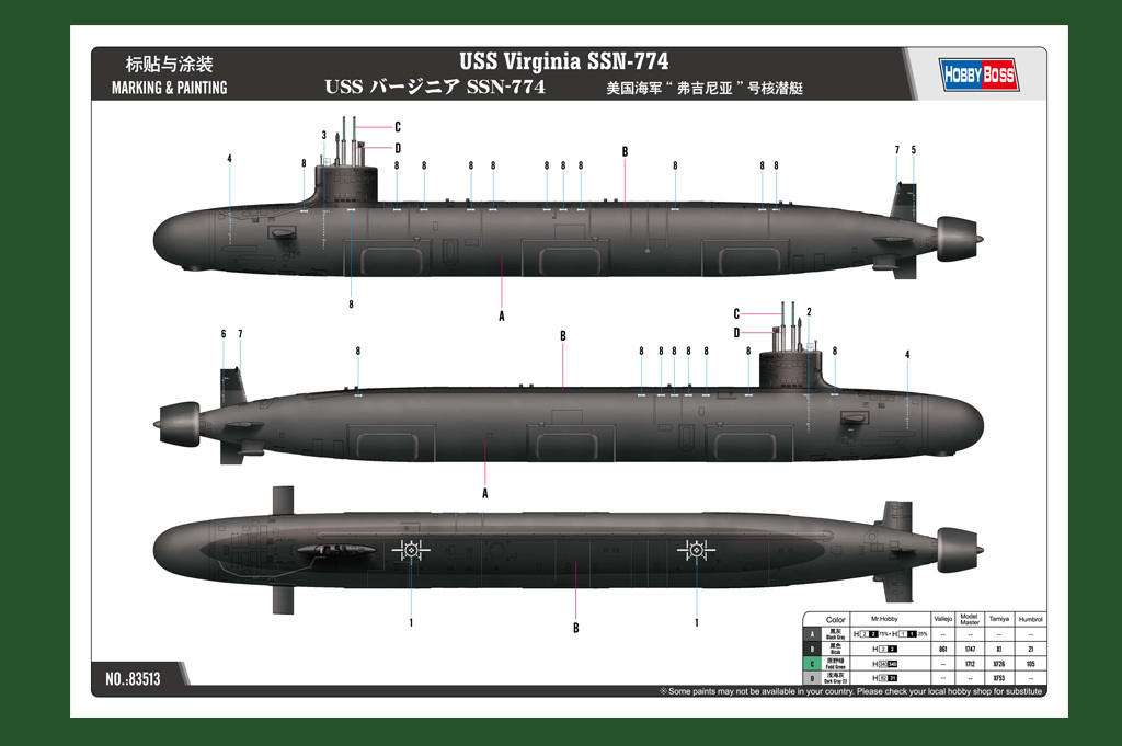 HobbyBoss 1/350 Virginia SSN-774 Plastic Model Kit [83513]