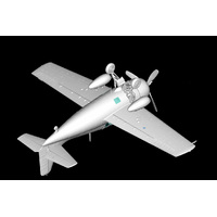 The FM-2 Wildcat was designed and prototyped by Grumman Aircraft. More than 4000 were built by the Eastern Aircraft Division of the General Motors Company between 1943 - 1945. These aircraft incorporated a lighter airframe and a more powerful engine. This meant there was a physical design difference between the F4F and the FM-2. The FM-2 had a taller vertical tail for stability to counter the increased torque of the engine. Armament consisted of 4 - .50 cal. guns, 2 - external bomb or fuel racks and air to ground rocket launch points on the wings. These aircraft were primarily operated from escort carriers to support ground operations in the Pacific theater of operations. These same aircraft were teamed with Grumman Avengers and used in anti-sub operations in the Atlantic against U-boats.