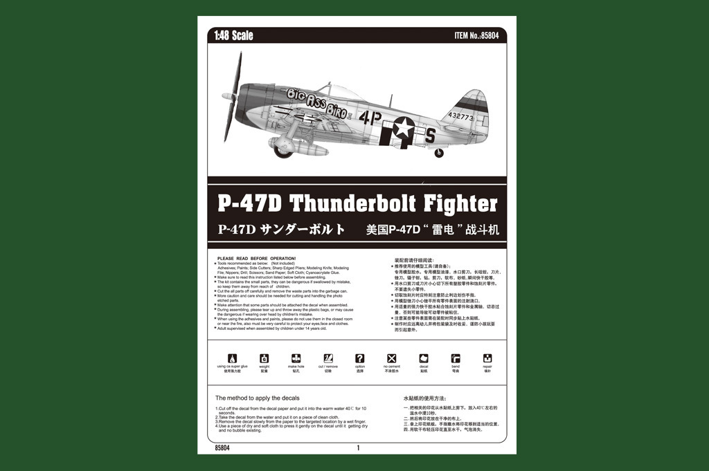 HobbyBoss 1/48 P-47D Thunderbolt Fighter Plastic Model Kit [85804]