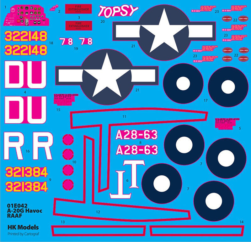This model kit includes 2x decal options for A-20G Havoc aircraft in RAAF service.