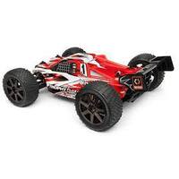 HPI Trophy Truggy Flux 1/8 4WD Electric Truggy Get right into plug-and-go truggy action with the RTR Trophy Truggy Flux! This amazing off-road 4WD vehicle will thrill you with its jaw-dropping top speed, racing design and wild stunt action! Always a popular kit in its Nitro version, the Trophy Truggy has seen it all when it comes to burly stunts, and with the awesome power of a purpose-designed brushless system it is able to pull off the same tricks and as the Nitro version - but without the noise and fumes! The Trophy Truggy Flux is completely painted and assembled for you, fitted with a no-crystal HPI 2.4GHz radio system and ready for you to add two 2S LiPo batteries! Youll get to experience 14.4 volts of monster power driving 1965KV of brushless power! Features: 4mm 6061 aluminium chassis has angled sides for extra stiffness Fits two hard-case 2S LiPo batteries with adjustable battery holders and hook & loop straps Tough front and rear bumpers help protect against crash damage Low centre of gravity design for top handling in the turns Adjustable mounts for the wide racing wing Extra-strong webbed suspension arms are strong yet flexible to give you the best balance of driving feel and durability Cast aluminium steering knuckles for increased strength Extra-long shocks provide all the damping youll ever need Race-tune the truck with plenty of shock adjustment positions Strong steel turnbuckles with chunky gripping points for easy adjustment of camber and front toe Multiple camber link locations offer several options for adjusting roll centre Front & rear sway bars fitted for superior race handling 17mm hex hubs resist stripping out and are hollow for light weight Specs: Length: 580mm Width: 405mm Height: 180mm Wheelbase: 365mm Track Width Front/Rear (from centre of tyres): 365mm Drivetrain: Full-Time Shaft 4WD Required: 2x 2S LiPo Batteries with Deans plug 4x AA Batteries LiPo compatable charger