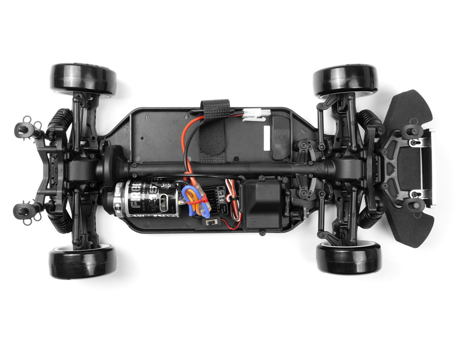 Under the hood, this 1/10th scale drift machine features the HPI Racing Sport 3 Touring Car chassis. With full-time shaft-driven 4WD, a fully sealed drivetrain, waterproof 2.4 GHz electronics and radio gear, independent double wishbone suspension, and adjustable oil-filled shocks, it’s ready to drift whenever you are!
