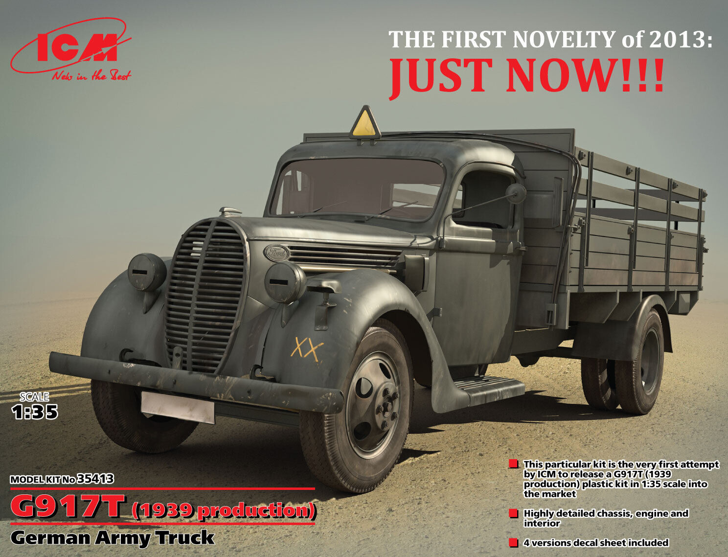The main part of the German Wehrmacht autopark during WWII formed 3t cargo trucks. One of the most numerous of them was model G917T, which was produced since 1939 in German Ford plants in Cologne. This truck was equipped with V8 engine and had rear drive only.