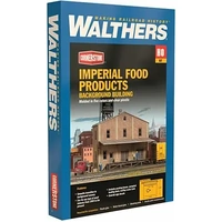 Perfect for steam or diesel-era layouts, the Walthers Cornerstone HO Scale Imperial Food Products Background Building is typical of structures used for a variety of businesses. This background building kit includes a detailed brick structure with a canopied loading dock - perfect for squeezing a thin-profile business along a spur next to your painted or printed backdrop. Use this kit to make your layout look larger, or to add variety to your background scenes.