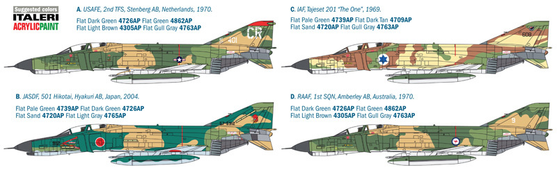 Developed by the American aircraft company McDonnell Douglas the F-4 Phantom II is a tandem two-seat, all-weather, supersonic fighter-bomber. It entered service during the sixties and it is one of the most famous airplanes of the military aviation history. In the original project, it was specifically designed for U.S. Navy but it has been used by all U.S. forces and it obtained a significant commercial success around the World. The F-4E version, specifically developed for the U.S. Air Force, adopted a M61 Vulcan cannon in the nose and it could be armed, to perform air-superiority missions, with AIM-9 Sidewinder and AIM-9 Sparrow air-to-air missiles. Thanks to its two General Electric J-79 powerful jet-engines, the F-4E was able to reach the top speed of 1,240 Knots. Speed, thrust and reliability were the Phantom II strengths able to successfully counterbalance the reduced manoeuvrability due to its big dimensions.