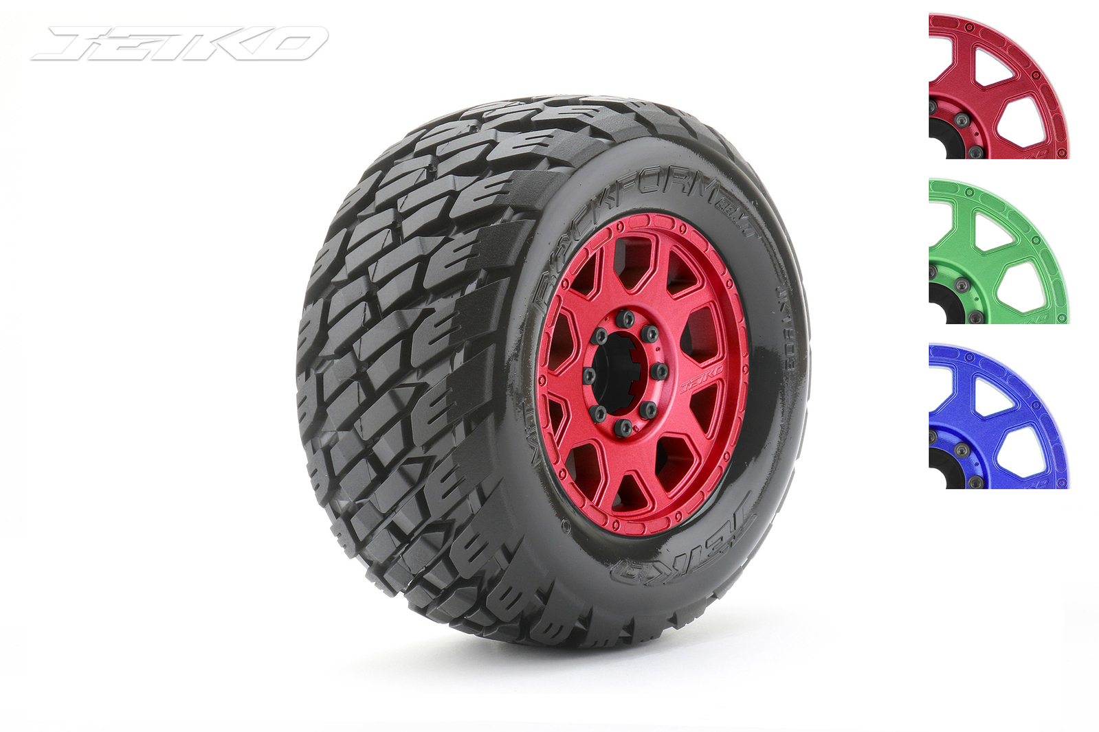 Jetko 1/8 MT 3.8 EX-ROCKFORM Tyres (Claw Rim/Metal RED/Med Soft/Belted/17mm 0 o/s) [1803CRMSGBB1]