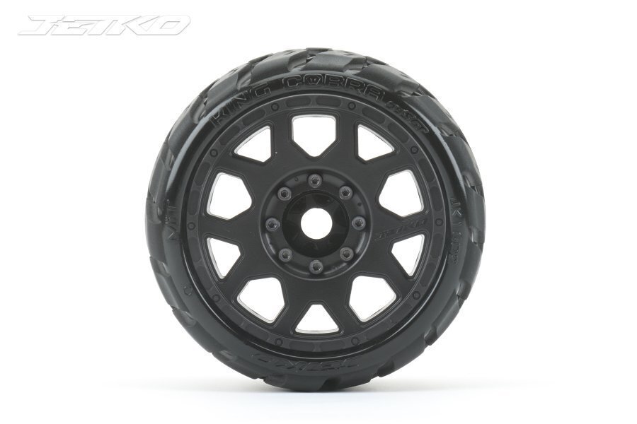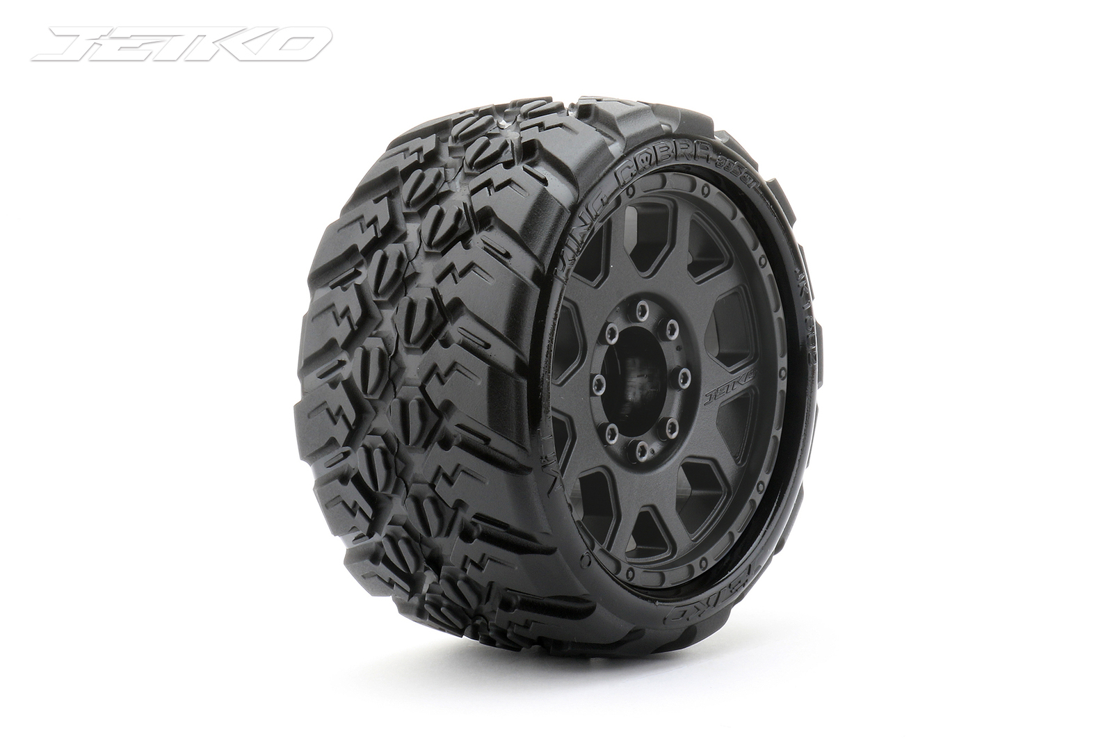 Jetko 1/8 SGT 3.8 EX-KING COBRA Tyres (Claw Rim/Black/Med Soft/Belted/12mm) [1602CBMSGBB3]