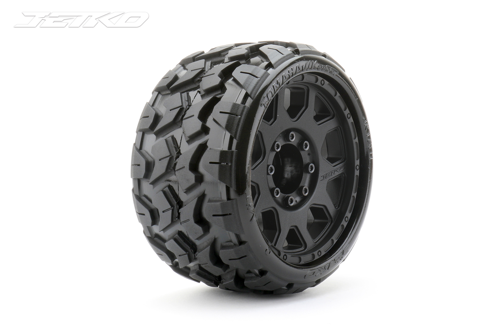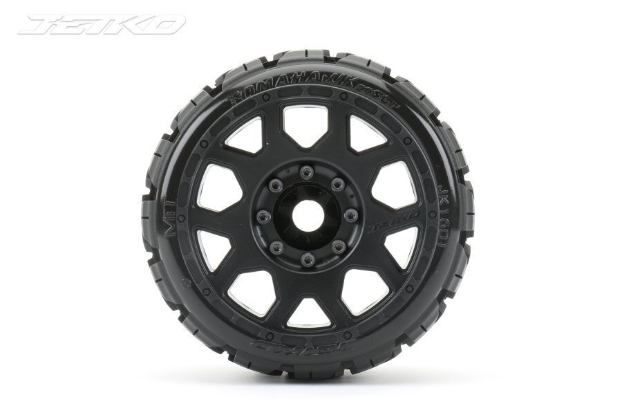 Jetko 1/8 SGT 3.8 EX-TOMAHAWK Tyres (Claw Rim/Black/Medium Soft/Belted/12mm) [1601CBMSGBB3]