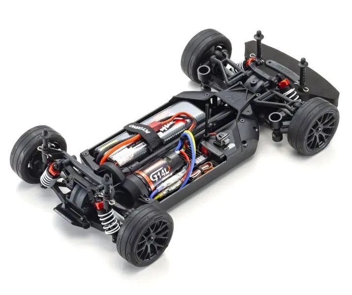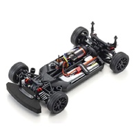 For the pure enjoyment of R/C car driving, the combination of a beautifully reproduced car body with the FAZER series chassis can’t be beaten. Kyosho has taken its standard touring car chassis and given it a full model makeover that has evolved performance to a new level. A simplified design with fewer parts has improved maintenance efficiency and reduced weight while core strength and rigidity has been increased through new materials and ribbing and stiffeners on front and rear. In addition, the symmetrical chassis design synergizes excellent front-rear balance through the suspension with responsive control, irrespective of power source. Featuring slipper clutch, front & rear gear differentials, oil shocks and full ball bearing specs, the high durability and impact resistance allows drivers to unleash the full potential of the chassis. Brake disc wheel hubs with two different offsets (0mm, +5mm) provide compatibility with 190mm and 200mm width body styles and allows the wheelbase to be adjusted to 274mm by replacing some parts (sold separately) for compatibility with other 1/10 scale body styles, in addition the body included. The Readyset package comes fully assembled and includes everything except charger and battery for the chassis, and batteries for the transmitter.