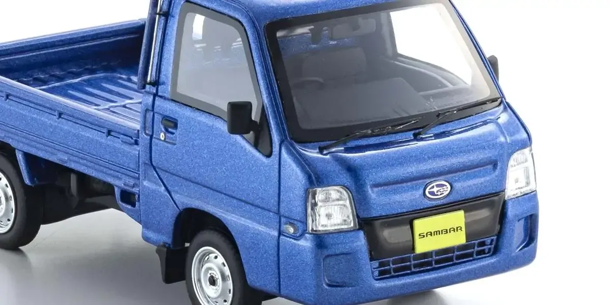 The Subaru Sambar Truck may be small in size, but this 1/43 Kyosho resin model packs a big punch in charm and detail. Finished in a cheerful Blue, the model captures the quirky, practical design of Japan’s beloved kei truck with amazing realism—from the compact cab shape to the open bed and subtle badging.
