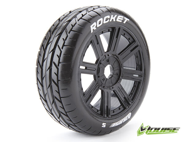 Louise RC - B-ROCKET - 1-8 Buggy Tire Set - Mounted - Soft - Black Spoke Wheels - Hex 17mm - L-T3190SB
