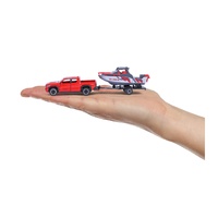 Whether it's an off-road vehicle with a quad bike in tow, a tow truck with a car on the loading area, or a tractor with a stylish silo tank: Majorette City Trailers always come with a trailer – so action is guaranteed! These tireless toy cars deliver double the driving fun – with freewheel, robust metal body and realistic functions.