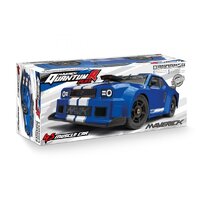 Maverick Quantum R Flux Muscle Car Blue The Quantum range is taking wild FLUX power to the road with the new Quantum R FLUX 4S Muscle Car! Available in three super-cool colorways that look so amazing you won't want to get them dirty, you'll be able to rip off impressive stunts with your friends for hours on end, thanks to a full set of HD drivetrain reinforcements! The Quantum R features a super-strong HPI 4S FLUX system for extra-fun top speeds and massive stunt action! With full-time 4WD, a fully independent suspension front and rear with oil-filled adjustable shocks, plus robust metal 4-gear diffs all wrapped in the awesome styling of a BRAND NEW retro-styled muscle car body, the Quantum R FLUX 4S Muscle Car is ready for any and all stunts you want to try! Requires Battery & Charger. Features: 4WD shaft drive Independent Double Wishbone Suspension Oil Filled Adjustable Aluminum Coilover Shocks Pillow Ball Front & Rear Suspension Uprights HD Front Universal Drive Shafts HD Diff Cups HD Shock Shaft HD Turnbuckles Tough Metal 4-Gear Differentials Front & Rear Center Differential Dual Point Bell Crank Steering System With Integrated Servo Saver Molded Tub Chassis with Hex Pattern Reinforcement Enclosed Receiver Box Protects From The Elements Complete Set of Ball Bearings 17mm Aluminum Hex Hub Tredz Tires - Belted Pre-Cut Factory Finished And Decaled Bodyshell Plastic molded body detail parts - with multiple engine options Available In Multiple Color Options 4S LiPo Capable 3674 2250KV Brushless Motor with 5.0mm Shaft 120A Waterproof ESC 15Kg Metal Gear Water-Resistant Servo 2.4GHz Radio Set with Waterproof Receiver