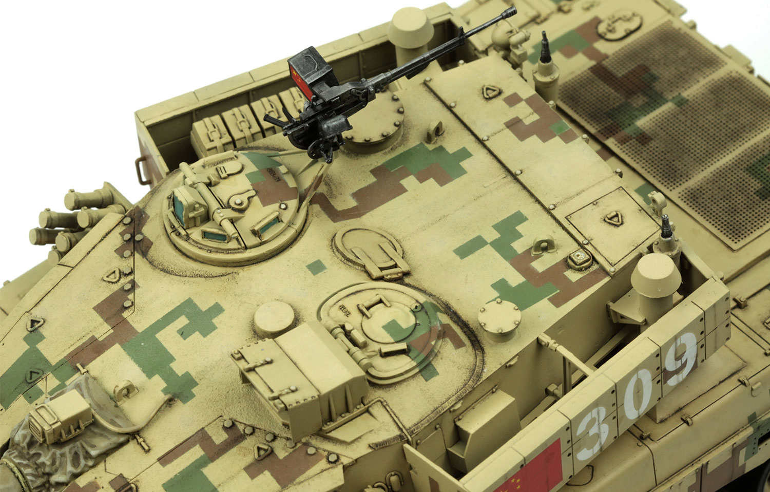 This TS-034 PLA Main Battle Tank ZTZ96B plastic model kit provides three build options: ZTZ96B MBT in 2016, ZTZ96B MBT in 2017 and the export version VT2. This kit contains a brand new movable suspension which has metal parts. The movable suspension looks good and works well. It’s firmer and more reliable.