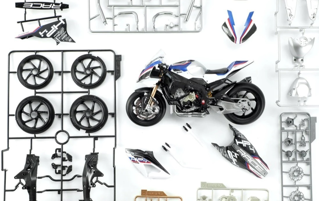 All the parts of this BMW HP4 RACE model are ready. Come on and build this speed machine yourself!