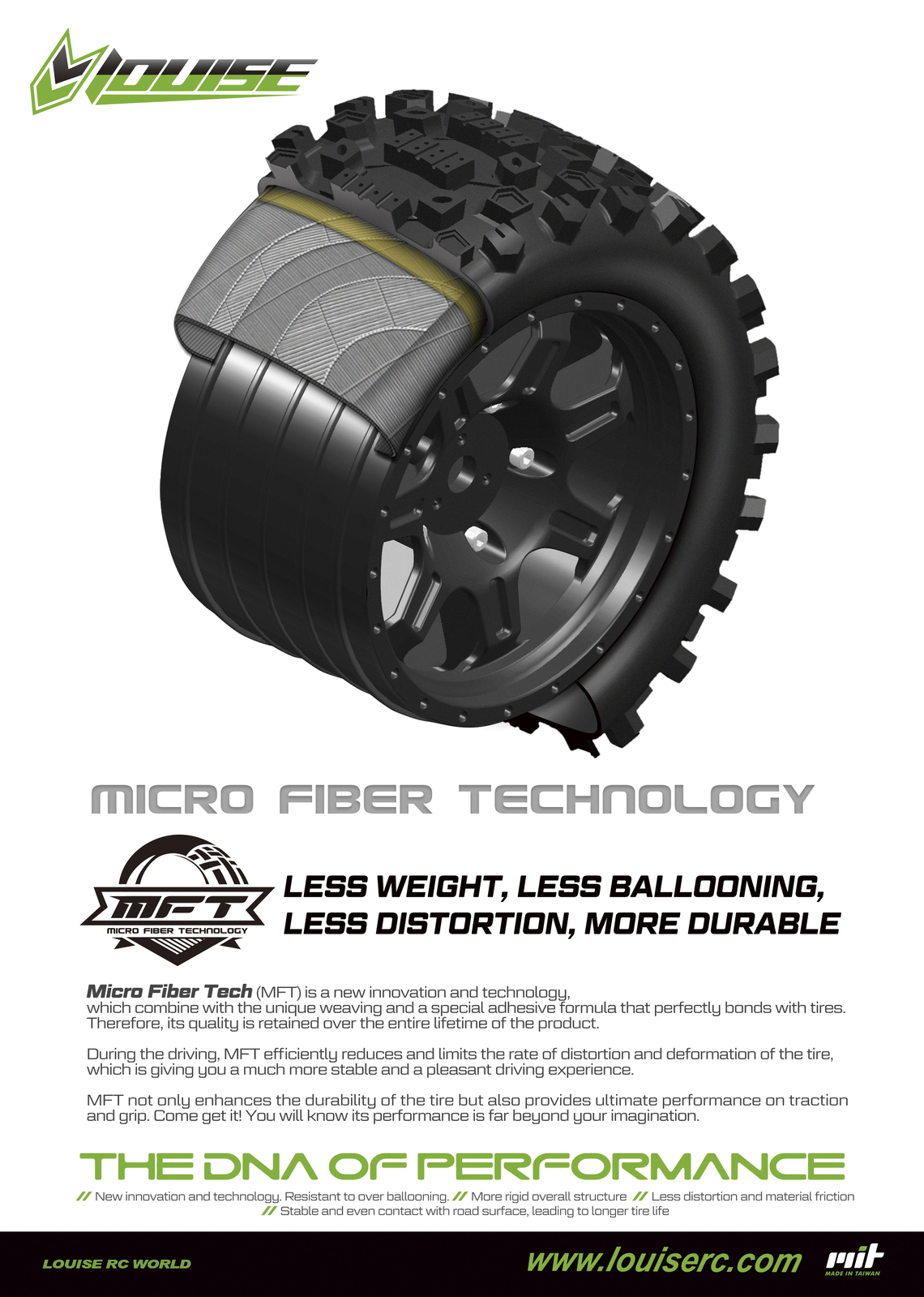 Micro Fiber Technology (MFT) is a new innovation and technology which combines a unique woven layer and a special adhesive formula within the rubber of the tyre. MFT technology reduces the overall weight, distortion and deformation of the tyre at high speeds in order to increase the overall durability, grip and performance of the tyre.