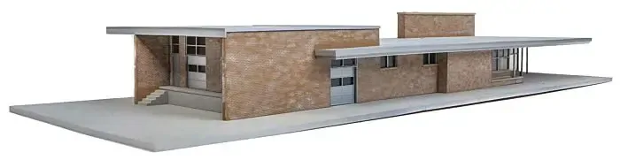 Based on a 1954 Santa Fe design, the Walthers Cornerstone Modern Brick Santa Fe Station kit captures the elegant, Midcentury Modern style of depots constructed in the postwar era. With flashy new streamlined trains entering service the railroad tackled the problem of aging stations, some worn out from deferred maintenance during the war. Early 1950s stations were the picture of sleek, efficient design. Based on the prototype at Hutchison, Kansas, several new depots of this style appeared along the Santa Fe's mainline and several of these well-constructed buildings still serve Amtrak, or have been repurposed as businesses. This easy-to-build plastic kit is a fitting stop for your Santa Fe streamliners. Additionally, other railroads constructed Midcentury Modern-style depots, so this building will look at home on your 1950s and later layout.