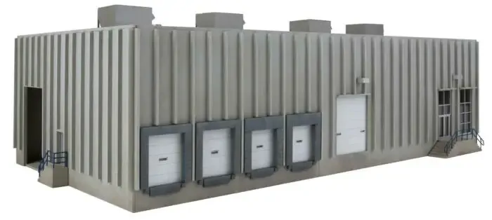 Bring new business to your HO industrial park with the Cornerstone Modern Grocery Warehouse kit! This detailed "tip-up" structure features one-piece "corrugated-style" walls with exterior splines, used for all types of large and small buildings. Other features include: