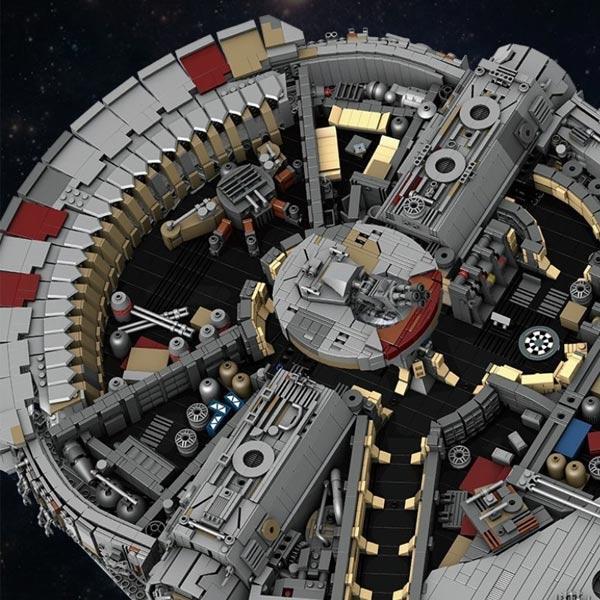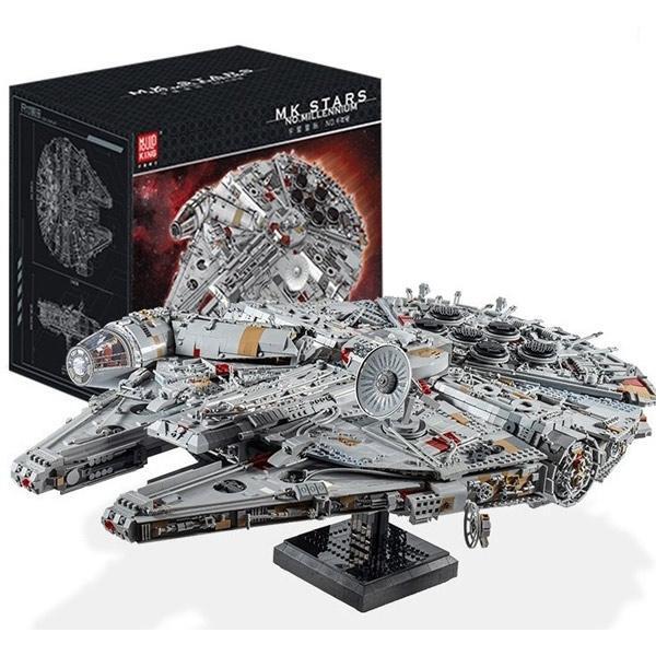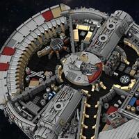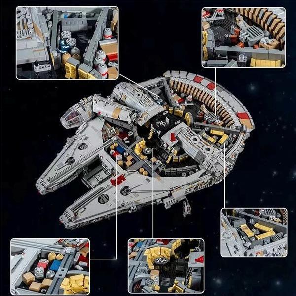 Defend the galaxy and build the huge Millennium Falcon spacecraft! This Millennium Falcon includes complex exterior details and interior decorations, four-tube laser cannons, electromagnetic laser cannons, battle cabins, and more. And if you remove the hull board, you can also see the very detailed main cargo compartment, combat resource storage compartment, combat preparation compartment, material storage compartment, meeting cabin, and rest compartment. The collectible model stands on a sturdy base and makes an impressive display.