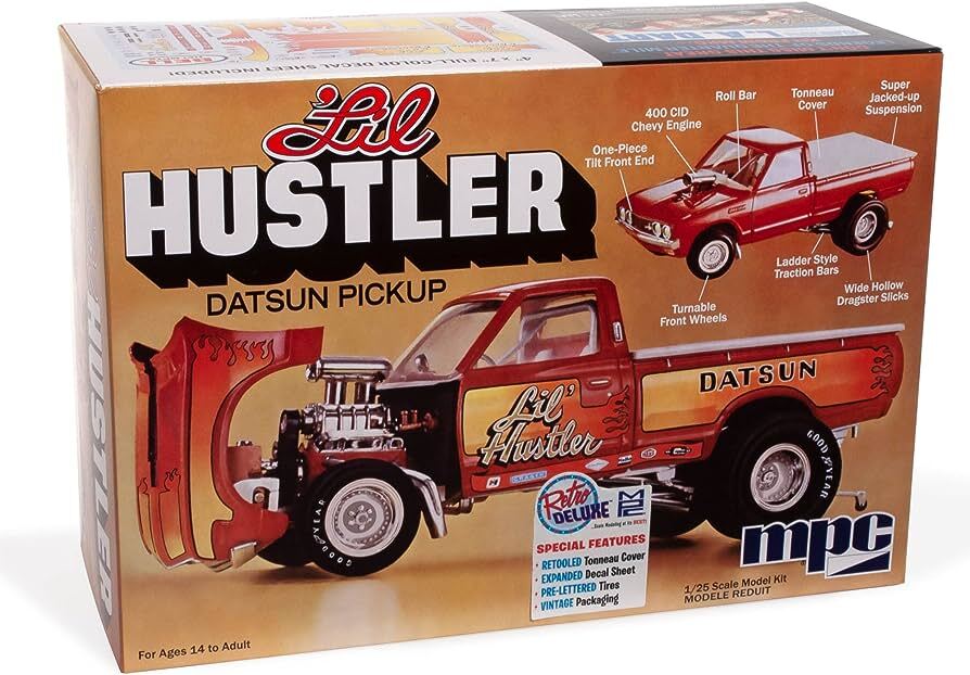 WILD MINI PICKUP DRAGSTER:Drag racing modelers get ready! MPC’s 1/25 scale 1975 Datsun “Li’l Hustler” pickup is a simple enough project for beginners but with enough detail to satisfy even the most seasoned model builder!