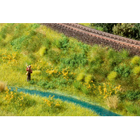 What’s so special about the Groundcover Foliage? Various grasses and pieces of flock material are electrostatically flocked onto a non-adhesive backing sheet. Due to the special, permanently flexible adhesive, the foliage can be effortlessly pulled off the backing sheet. The Groundcover Foliage is then incorporated into the model landscape as a whole or in pieces. We recommend the Landscaping Glue for glueing.