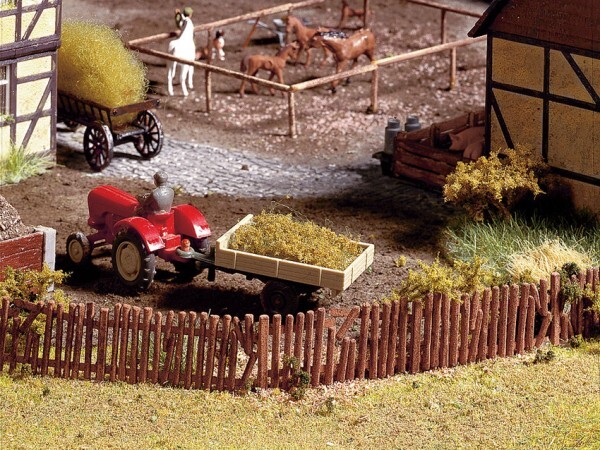 The individual fences can be combined at will in order to create any fence line imaginable. There are straight elements, garden doors, entrances, delapidated fence elements, and a lot more to discover. Some of the most beautiful fences are also available for the TT and N scale.