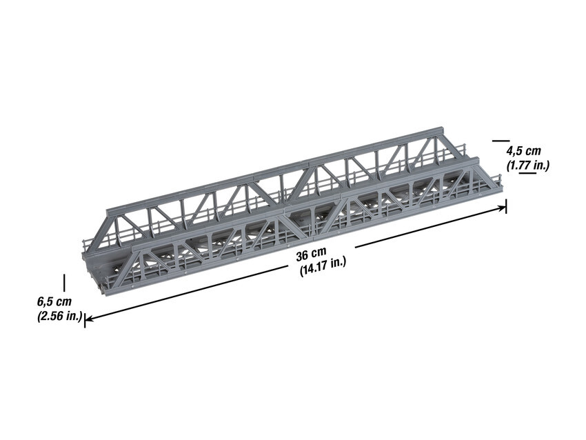 With NOCH Steel Bridges, we offer a complete range of bridges for H0 tracks, which are compatible with all common track systems - including Märklin C tracks. The plastic bridges are modelled after the originals convincingly, they display a lot of appreciation for detail and they can be set up easily.
