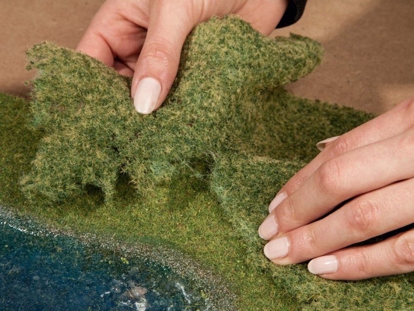 Meadow Foliage: The Meadow Foliage is also created by electrostatic flocking. In contrast to the Wild Grass Foliage, shorter grass fibres are used. The Meadow Foliage is applied in all areas, as for example for meadows, pastures and agricultural land.