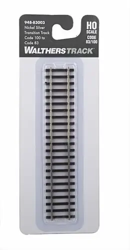 Add a realistic variety of track sizes to your HO Scale layout with this WalthersTrack accessory, that smooths the transition to and from different sizes of rail. Perfect for yards and sidings, it comes fully assembled with prealigned sections of both Code 83 and Code 100 rail and features: