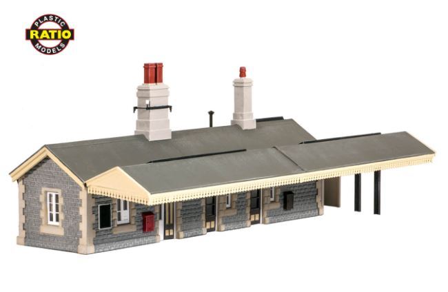 A model of the station at Castle Cary, Somerset. Although of typically GWR design, it can be adapted to suit that of other railway companies. The kit includes notice boards, telephone and first aid boxes. Supplied with pre-coloured parts although painting and/or weathering can add realism; glue is required to complete this model. Footprint 210mm x 135mm (inc. canopy)