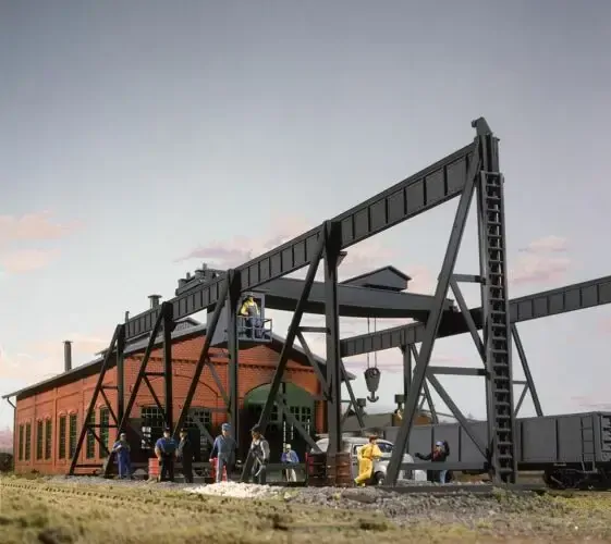 The Walthers Cornerstone HO Scale Overhead Traveling Crane is great for detailing many industrial structures or as a stand-alone structure in a scrapyard or metal handling facility. Traveling cranes like this one move metal materials from outdoor staging areas to waiting freight cars or trucks. This detailed kit features a covered motor housing that can be positioned, an operator's cab, a non-working electromagnet and overhead supports. A great addition at all kinds of heavy industries, use the Overhead Traveling Crane in steel mills, scrapyards, foundries, railroad yards and wherever heavy lifting is needed on your railroad.