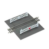 Modern type crossing barriers complete with dummy light standards. Can be used with the Peco Setrack Level Crossings ST-261/263/266/267 and 268