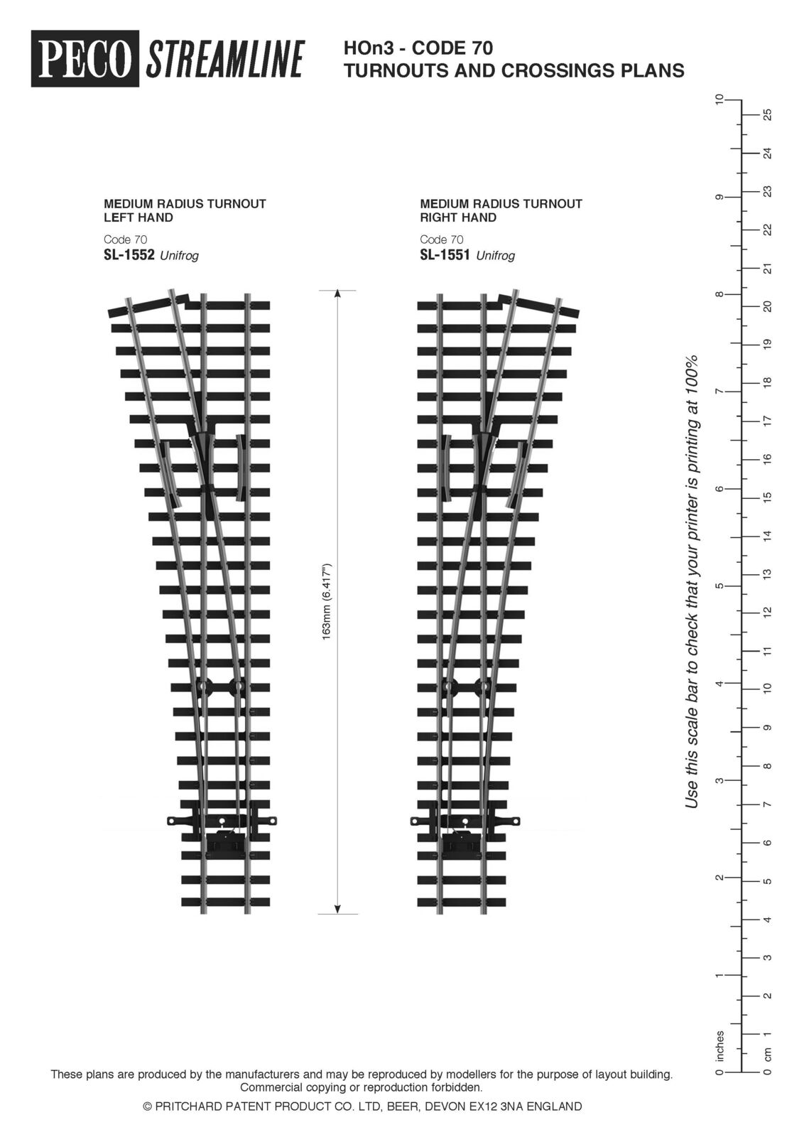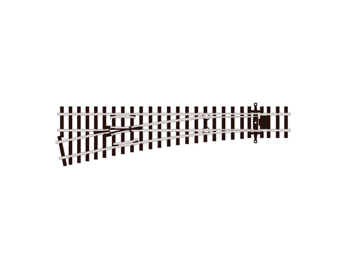 PECO STREAMLINE HON3 CODE 70 TURNOUT, MEDIUM RADIUS, LEFT HAND Three feet was the gauge chosen by American railroad engineers faced with the task of bringing full sized trains into mountainous terrain. This turnout features our new versatile Unifrog design which can be operated, powered and switched like an Electrofrog or left unpowered if preferred. Technical Specification: Length: 163mm Frog Angle: 11.42 Degrees Radius: 762mm