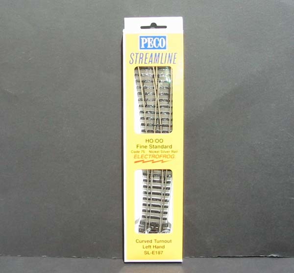 Peco Products SL-E187 OO Gauge (1:76 Scale) Finescale left hand curved point - electrofrog