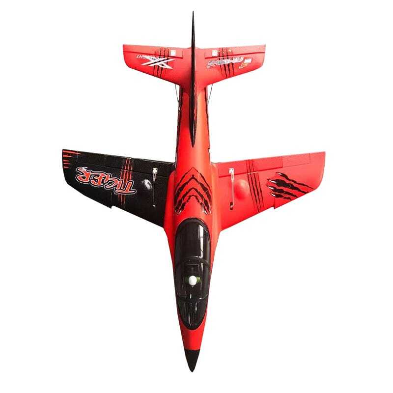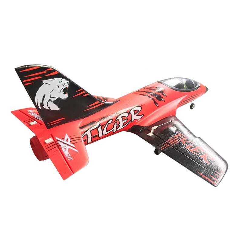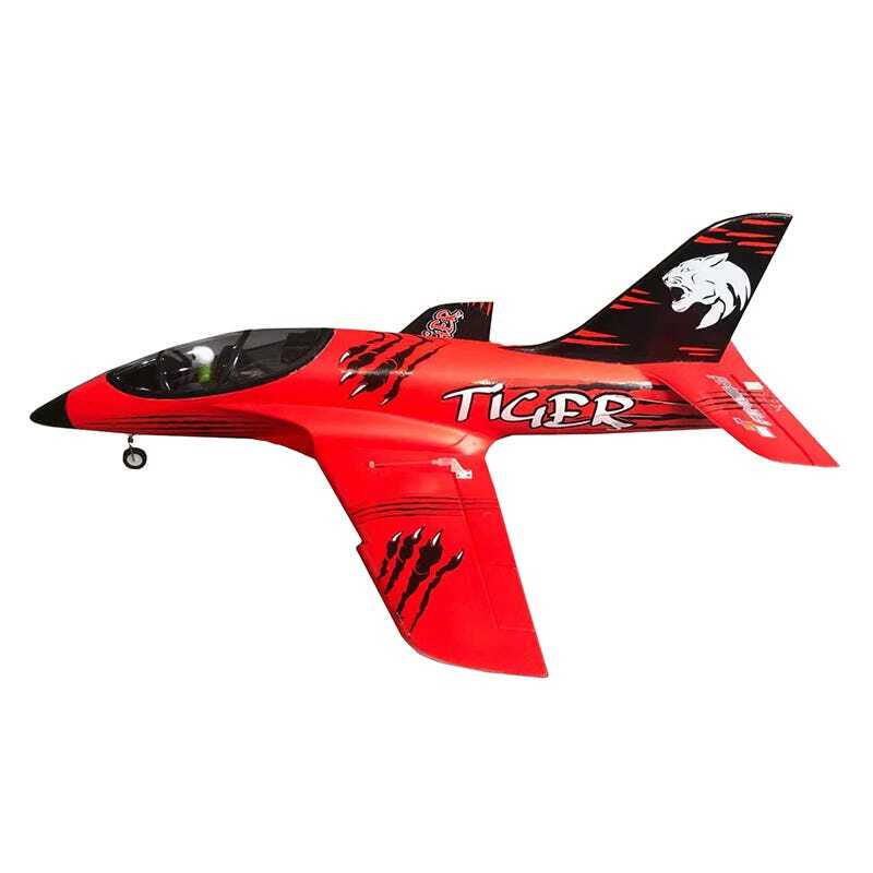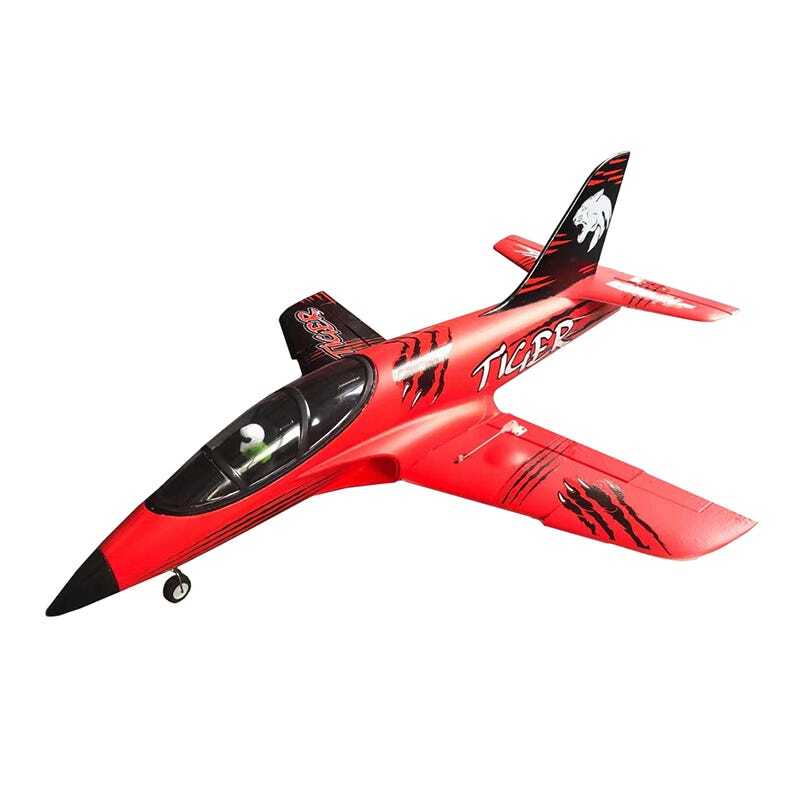 Prime RC Tiger S 50mm EDF Jet - Red Red The Prime RC Tiger S EDF jet features a 12 blade fan and 4900KV brushless motor. This EPO jet comes in a PNP format, with 4 pieces of 9g servos installed, a brushless 4900KV motor, a high quality 12 blade fan and a Hobbywing 40A Skywalker ESC. It can be flown with the undercarriage fitted, and with a steerable nose wheel, or the gear can be removed and the Tiger S hand-launched for even faster flight. It takes a 3S 2200mAh LiPO with an XT60 connector fitted to the ESC. The striking red and black colour scheme assures great visibility. The Tiger S is fast and aerobatic but lands quite slowly due to its design and wing loading. Fun to fly and it sounds great in the air! Contents: Fuselage with motor/EDF unit, ESC and servos installed Canopy and cockpit Main win panels with aileron servos Tail wing panels: vertical and horizontal stabiliser Landing gear Parts bag Features: Removeable canopy with pilot figure included Large battery tray will accept 1800-2700 packs Precision moulded EPO airframe Removeable landing gear A small amount of assembly required Requires: 4+ channel radio and receiver 3S 1800 - 2200mAh LiPo battery with XT60 connector Suitable charger Specs: Flying Weight: approx. 570g Wingspan: 650mm Brushless Outrunner Motor: 2627-4900KV (included) ESC: Hobbywing 40A Skywalker w/XT60 (included) Servos: 9g x 4 (installed) Receiver: 4 channel + (required) Battery: 3S 2200 LiPO w/XT60 connector (required) Functions: Aileron (2), Elevator, steerable nose wheel Material: EPO foam