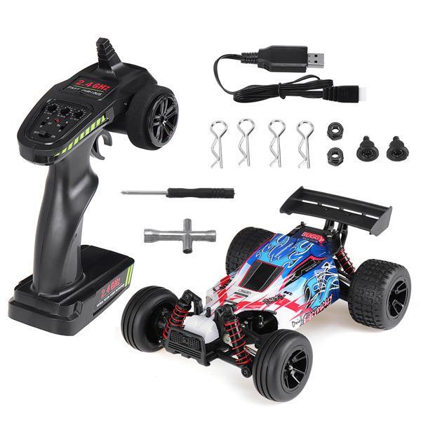 PX Toys 1/18 Buggy Ready To Run Small and mighty, the ENOZE range from PX Toys are great fun at a top speed of 40Kph, making these little cars perfect for tearing up the back yard! A full parts backup, replacement batteries and metal upgrade parts are available to ensure that the fun never ends. Supplied complete with radio controller, battery and charger, all you need is 3x AA batteries for the controller. Specs: Scale: 1/18 Speed: 40km / h Drivetrain: 4WD Motor: brushed 380 Transmitter Frequency: 2.4GHZ 2CH Battery: Li-ion7.4v 850mah Control distance: 50m Function: forward, backward, left, right Package includes: 1 x RC Car 1 x Controller 1 x Rechargeable battery (built-in) 1 x Charger