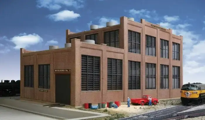 The huge railroad shop buildings dedicated to engine repairs were the heart and soul of the shop complex. The prototypes for the Cornerstone Railroad Shop were built for the needs of steam locos, but were easily upgraded to handle diesels in later years. Based on our earlier Backshop kit and sharing many architectural elements, this detailed structure kit is larger to handle almost any motive power. In addition to its many details, there's room on the inside for adding the Heavy-Duty Crane in the main bays, and the smaller Overhead Traveling Crane 933-3102, sold separately) in the annex. Used by itself, the Railroad Shop building is perfect for all kinds of heavy industries that require overhead crane space and a large working floor.