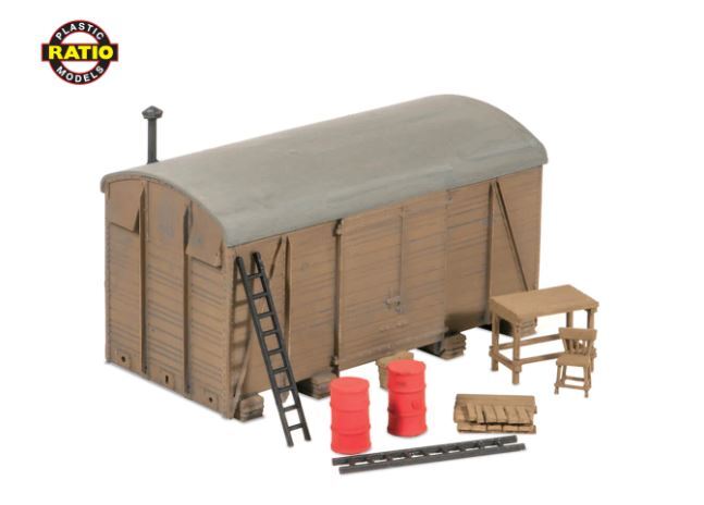 Usually used for storage around the station or goods yard, they often can be found being used as sheds or on farmland. Clutter included; supplied with pre-coloured parts although painting and/or weathering can add realism; glue is required to complete this model. Footprint 176mm x 90mm