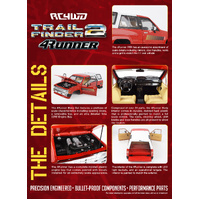 Every Trail Finder 2 is compatible with a full range of options and performance parts designed to enhance the Performance and add to the scale look of the true scale 1/10 Off-Road Truck... The Trail Finder 2!