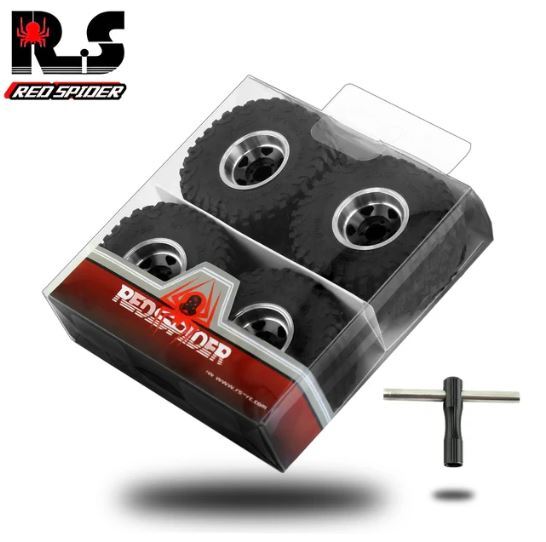 Red Spider - 1/24 Wheel and Tyres 1.0in Beadlock Black 4 pieces