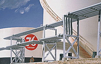 Perfect for adding detail to oil refineries, chemical plants, steel mills and more, the Walthers Cornerstone HO Scale Refinery Piping kit is a great addition to your industrial scenes. The kit includes overhead supports, angles and other fixtures. Modular piping design allows for many possible configurations to fit your refinery or industrial installation.