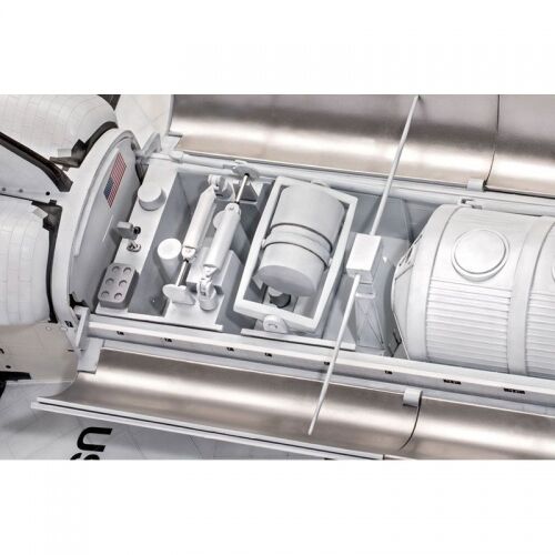 Developed by the US Space Agency NASA the "Space Shuttle" was for a long time the only reusable space transport system in the world. It consisted of the components - Space Shuttle (Orbiter) with three reusable main engines, an external fuel tank and two solid fuel booster rockets with a total launch thrust of 12.46 MN (1,270,566 kp). The space shuttle was able to simultaneously bring a payload of 24.5 tons and 7 astronauts into a low earth orbit between 200 and 650 kilometres. The first launch of a Space Shuttle into space took place on 12 April 1981 with the space shuttle "Columbia". Replicated tile structure Detailed cockpit Cockpit roof may be removed 2 crew figures Freight compartment doors can be opened Detailed landing gear Movable rudder Removable ESA Space laboratory Movable transport arm (loading arm) Thrust nozzles Super decal set with registration marks from the Space Shuttles Columbia, Discovery, Atlantis and Endeavour In addition to basic colours, adhesives and brushes are also included.