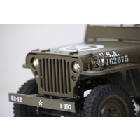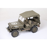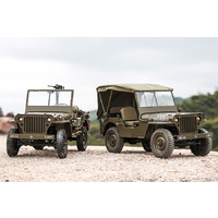 ROCHOBBY MB Scaler 1/6 Scale ROCHOBBY is proud to announce its latest creation, the 1/6 MB Scaler. 2 years in the making, the MB Scaler is the result of dedicated research through countless historical photos and documentation. Dedicated to the soldiers who served with this legendary vehicle, the ROCHOBBY MB Scaler was designed to be the most accurate radio controlled MB on the market today. Scale enthusiasts will appreciate the detailed pre-painted and pre-assembled body, featuring functional lights, servo driven steering wheel and a fold-away windshield. Small features such as the fabric straps that hold the painted axe and shovel add to the realistic look and feel of the vehicle. The cabin replicates the real vehicle with micro-print instruction labels, gear levers and seating that fits 1/6th scale soldiers. Performance was not overlooked when creating the MB Scaler: a modern crawler chassis was chosen to retain the body-on-frame and solid axle design of the full scale MB. Oil filled shocks replace leaf springs to allow for axle articulation. Narrow wheels feature specially formulated high-grip tires with period-correct tread to provide maximum traction while retaining the scale look of the MB. Don’t miss your chance to own one of the most iconic vehicles of the second world war! Body - Realistic injection-molded body - Body-on-frame design - Servo-driven steering wheel - Functional front and rear lights - Fold-away front windshield - Injection-molded engine with functional hood - Functional spare wheel - Fits most 1/6th scale figures - Optional canvas top - Prepainted shovel and axe Chassis - All-terrain 324mm wheelbase crawler chassis - True ladder-frame chassis design - Grippy tires for true, all-terrain performance - Beadlock wheels - Oversized battery compartment - Planetary gear reduction set - Oil filled shocks Electronics - 550 sized 35T motor provides fantastic torque - Fully waterproof receiver and Hobbywing 1060 brushed ESC - 2.4GHz fully proportional compact radio system - Dual channel EPA and reverse functions with digital trim Whats's in the box: -1/6 1941 MB Scaler -2.4GHz Radio Transmitter and Receiver -Complete instruction manual REQUIRES: -7.4V(2S) or 11.1V(3S) 5000mAh Li-ion Battery with T-connector -Balance Charger -4x AA Batteries for 2.4GHz Radio Transmitter