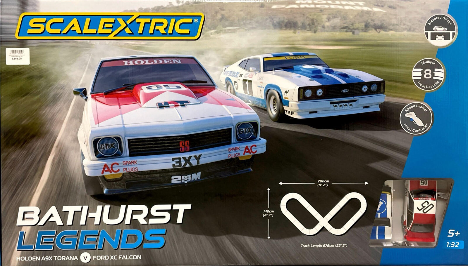Featuring two of Australia's most well known race cars, this set includes 676cm of track to make a 280x140cm layout.